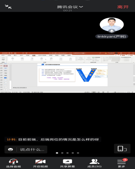 线上宣讲会邀请校企合作企业在进行企业推介的同时,向23届毕业生提供前、后端开发、软件测试、软件实施、技术支持、硬件工程师等岗位的就业机会。宣讲会现场氛围热烈,每场参与人数达到70余人,员工积极与企业互动提出应届毕业生初次就业关心的问题,并得到企业详尽的回复。太阳成集团tyc522cc就业辅导员余珺瑞参加“线上宣讲会”活动,余珺瑞老师对到场的企业表示欢迎,期待企业能收获满满,并对23届毕业生提出“先就业,再择业”的就业理念,希望同学们都能用好应届生身份,在毕业前找到一份较为满意的工作。