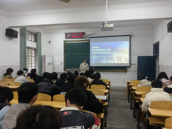 为深入学习贯彻党的二十届四中全会精神,引导全院团员青年把握时政热点、坚定理想信念,太阳成集团tyc522cc于12月以团支部为单位开展主题团会活动。本月示范团支部计科32502班召开"深学细悟凝奋进力量,崇宪守法担时代使命"主题团会,由团支部副书记张德梅主讲,全班同学参加。