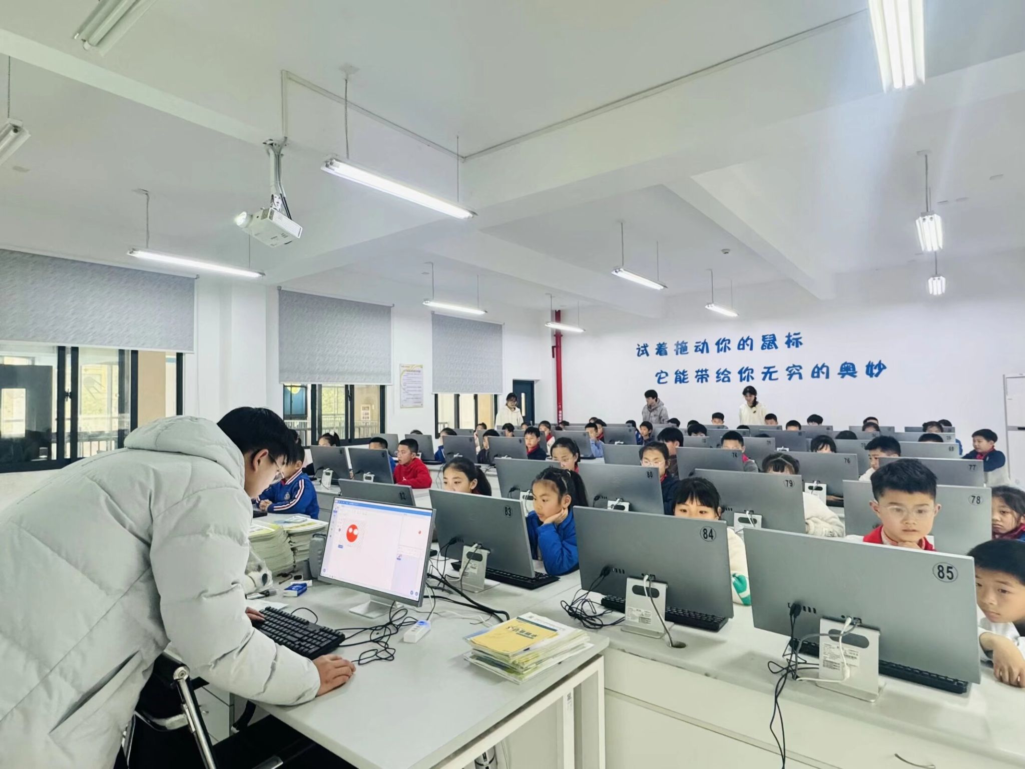 教室里的热情全程拉满:孩子们有的两两凑在一起,叽叽喳喳讨论着自己的游戏创意;有的皱着小眉头,专注地调整着每一块指令积木;还有的完成了基础玩法,迫不及待给自己的贪吃蛇加上了星空背景、闯关关卡、专属特效。当自己亲手做的游戏顺利跑通的那一刻,孩子们举着小手争先恐后地举起小手,骄傲地展示着自己的作品,亮晶晶的眼睛里全是创造带来的快乐与成就感。