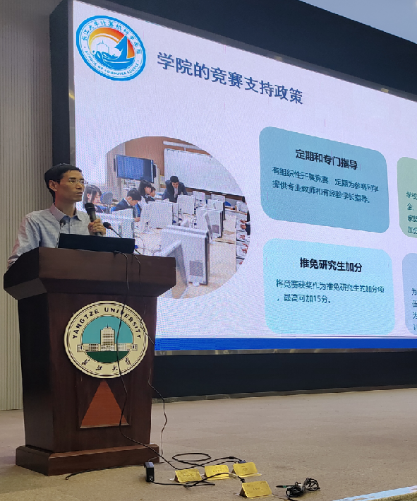 会议伊始,公司副经理陈中举围绕学科竞赛政策展开专题解读,从学科竞赛分类、报名渠道筛选到奖励机制细则,逐一进行清晰说明,鼓励新生以竞赛为契机,锤炼专业技能、提升综合素养。