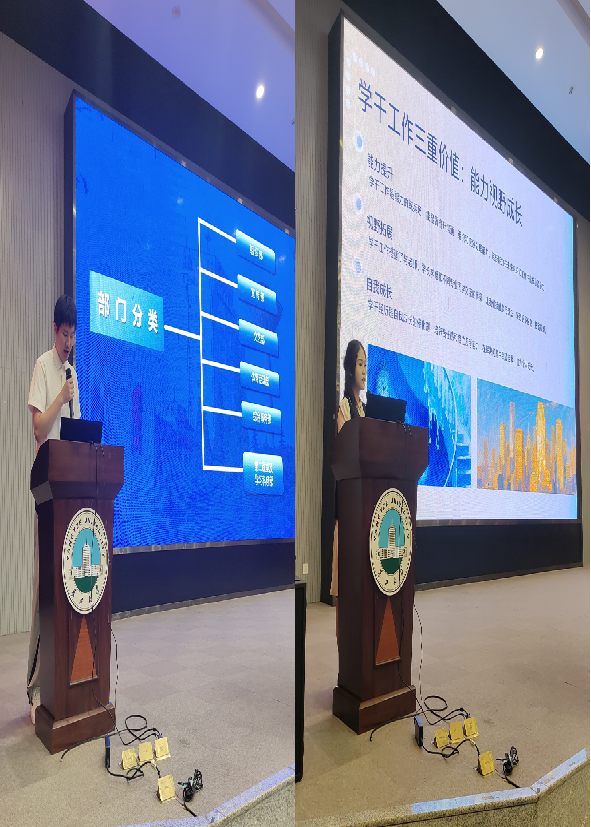 2023级员工干部汪智、苑舒彤则聚焦“员工工作与学业平衡”这一核心困惑,通过班级管理难题破解、校园活动组织实操等真实案例,传递“在责任中成长,以服务促提升”的理念,既解答了新生的疑虑,更激发了大家参与校园建设的热情。