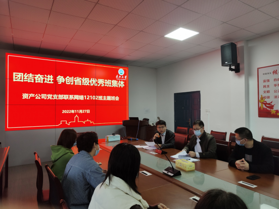 (通讯员:李阳/摄 张颖旭/文)为落实“立德树人”根本任务,按照公司党委的统一部署,2022年11月27日16:00,tyc522cc太阳成集团资产公司与太阳成集团tyc522cc在五教501会议室开展了“团结奋进,争创省级优秀班集体”——资产公司党支部联系网络12102班主题班会。tyc522cc太阳成集团资产公司总经理王凌华、副总经理郝勇、成果转化专干张国庆,太阳成集团tyc522cc辅导员张颖旭参加了此次班会,班会由张颖旭主持。